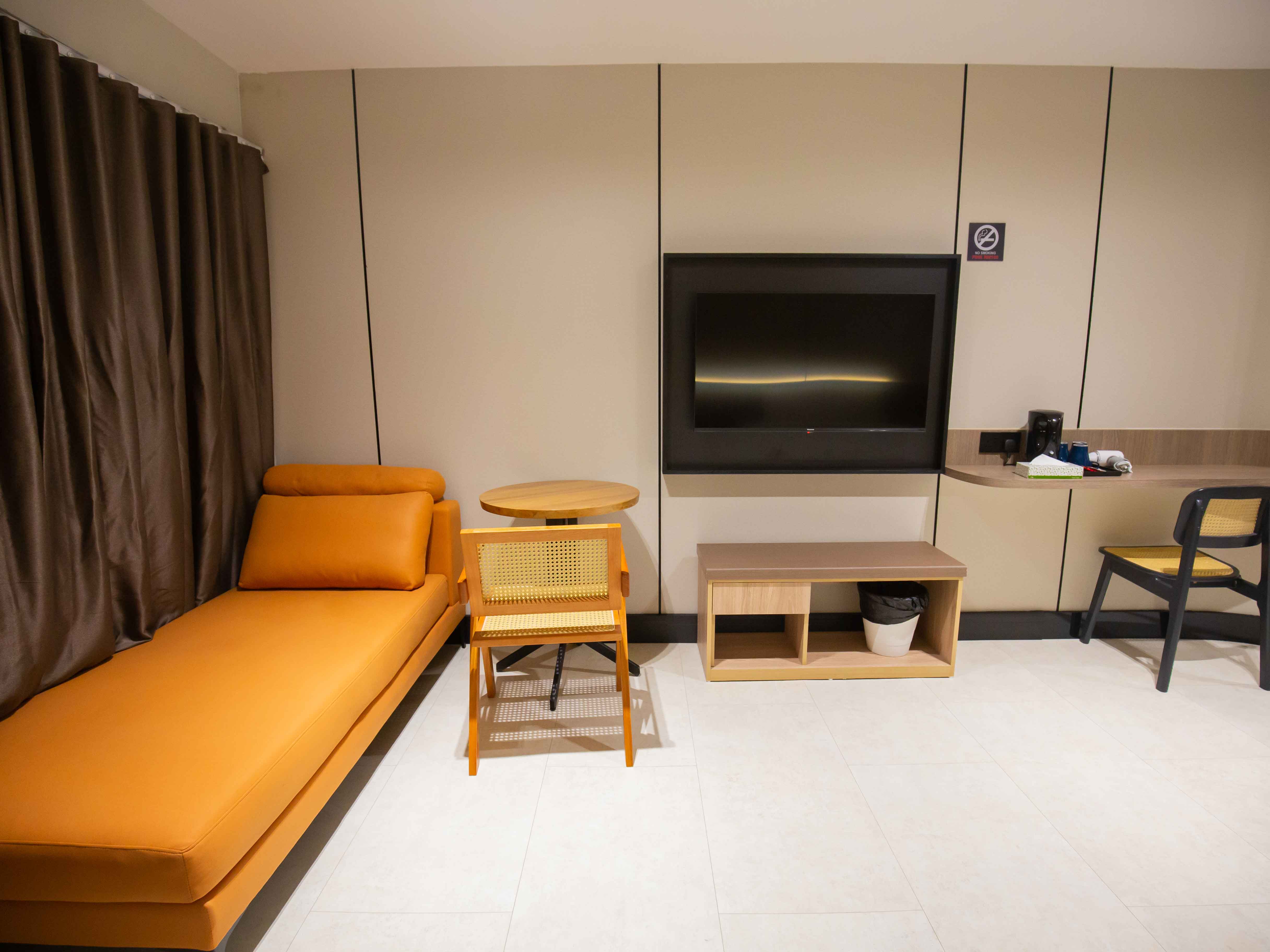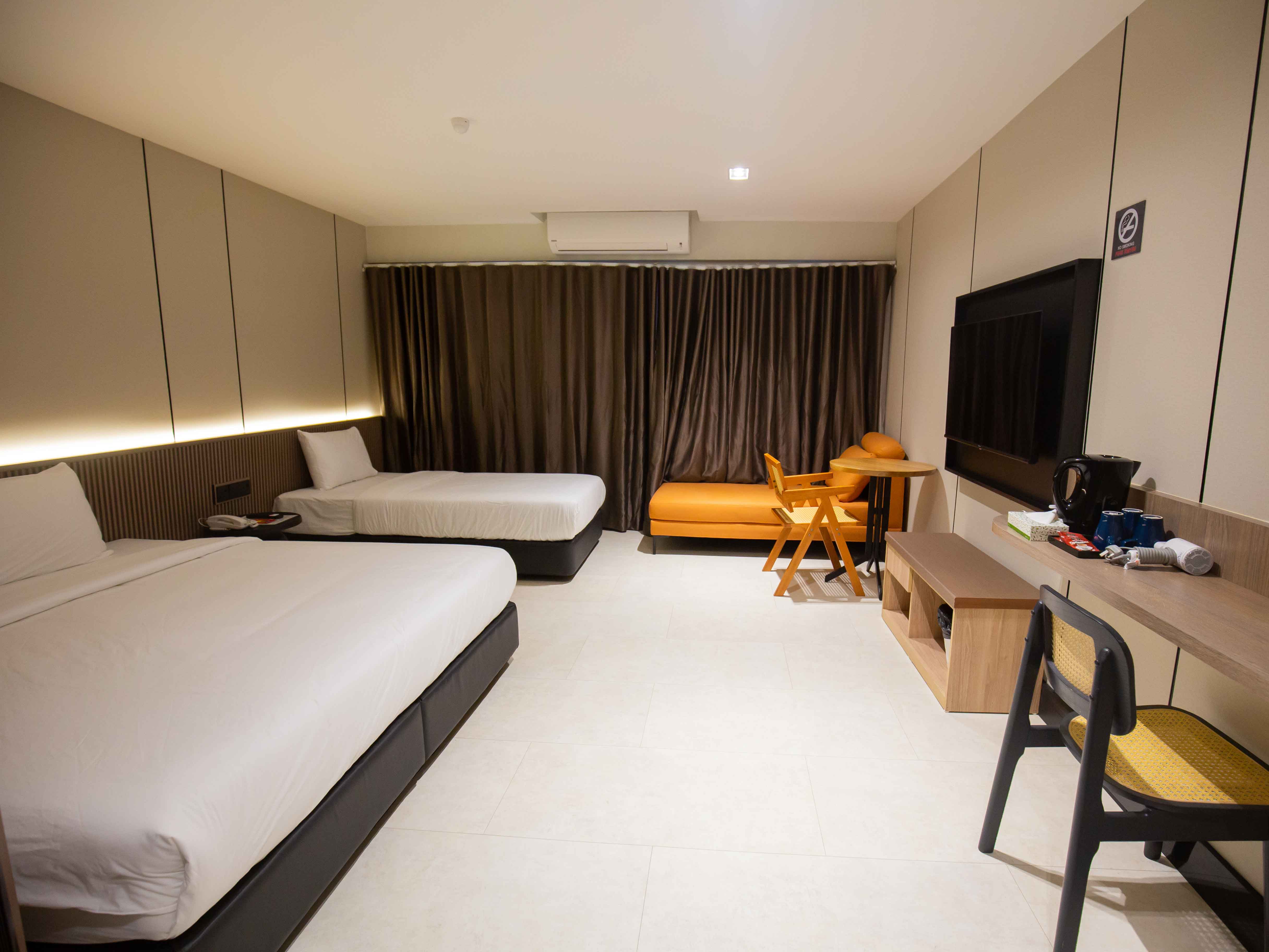 Spacious and comfortable, our 19㎡ Executive Suite is ideal for up to 3 adults, featuring a king-sized bed and a single bed. Enjoy the convenience of a private bathroom, free WiFi, air conditioning, and a flat-screen TV—perfect for families or small groups seeking a relaxed and affordable stay.